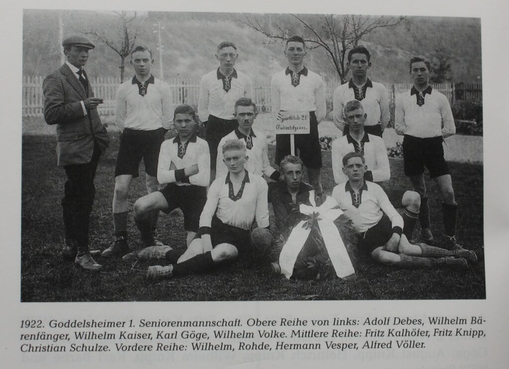 „Turn- und Sportverein 1912/21 Goddelsheim“ zu. 85 Mitglieder traten noch am selben Abend dem Verein bei. Adolf Debes wurde zum 1. Vorsitzenden und Otto Kister zum Stellvertreter gewählt. Weiterhin gehörten dem Vorstand Fritz Stede (Schriftführer), Fritz Brühmann (Kassenführer), Adolf Emde (Sportwart) und Dr. August Knoche (Turnwart) an.
